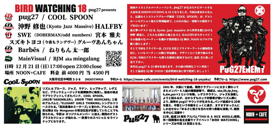 2025/12/21 Sun. 中崎町 NOON+CAFE 17:00 OPEN 23:00 CLOSE ADV.4000YEN DOOR. 4500YEN